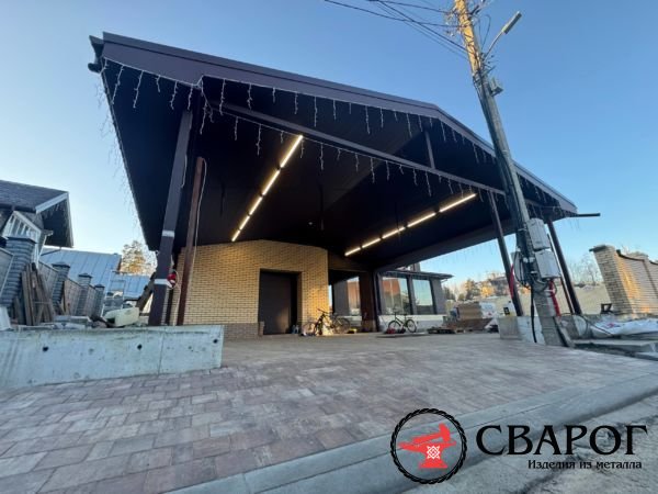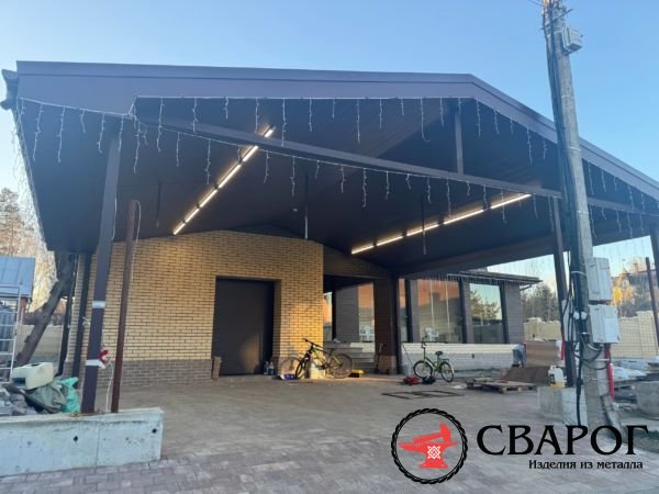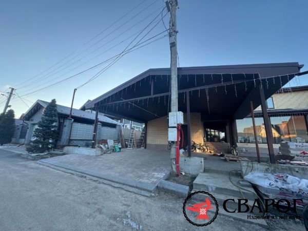 Сварной козырек из профилированной трубы. Цвет поликарбоната на выбор. Полимерный окрас конструкций.