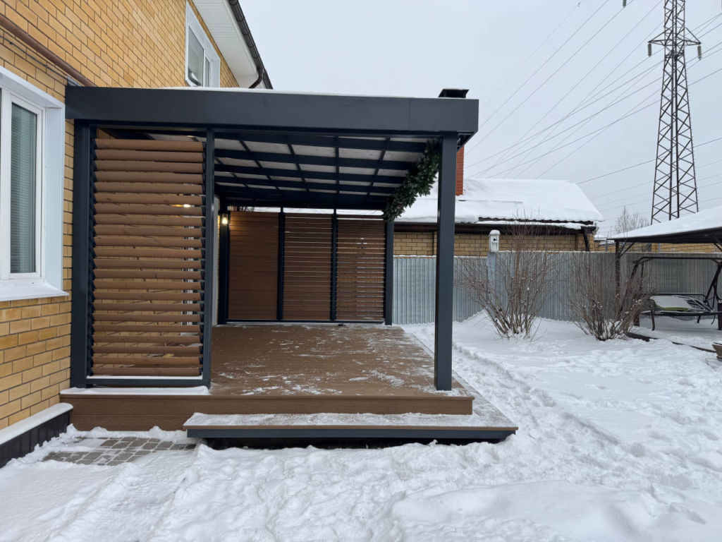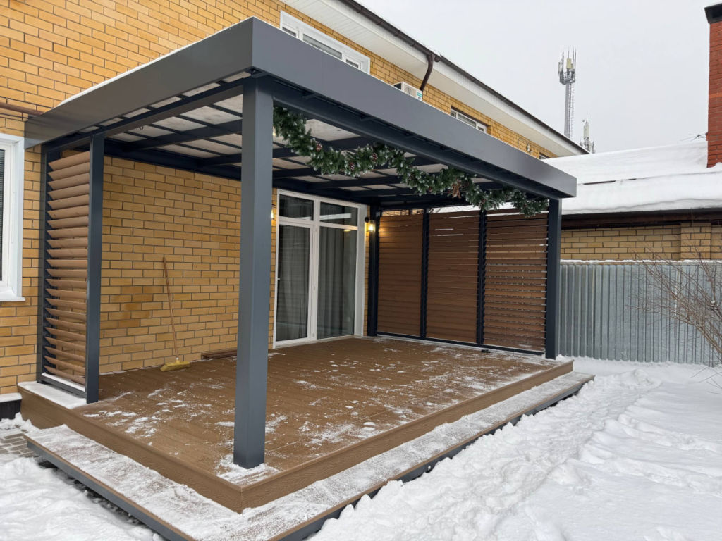 Навес с умной перголой и терраса ДПК Царицино
